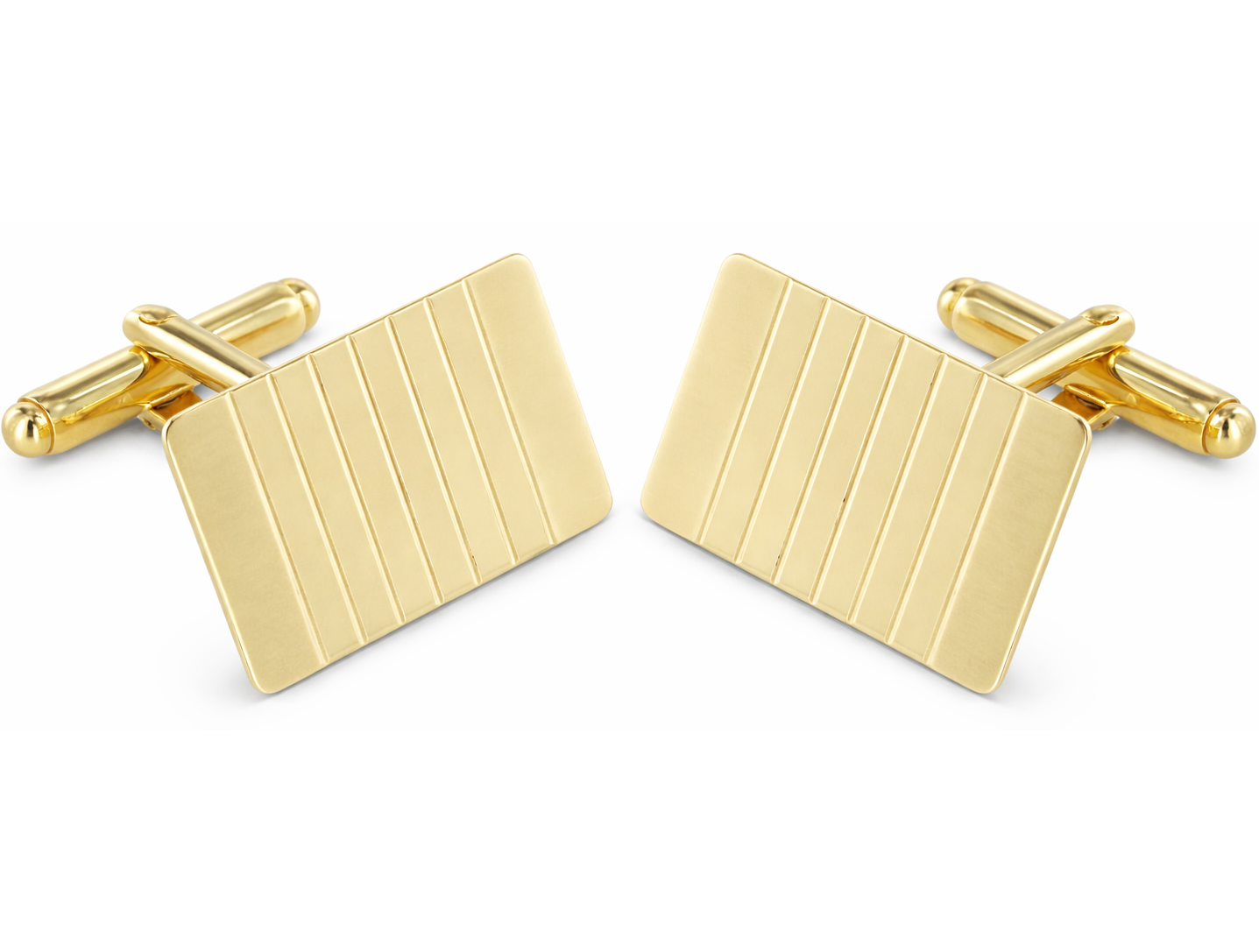 Rechteckige Manschettenknöpfe aus 585er Gelgold mit stylischer Musterung. Die Oberfläche der klassichen Gold-Manschettenknöpfe ist durch mehrere Rillen in Längsrichtung unterteilt und erhällt hierdurch eine interessante und symetrische Struktur.