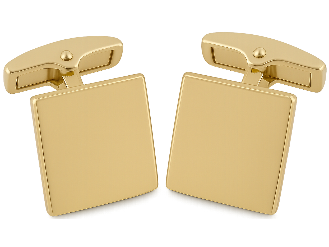 Die quadratische Form verleiht diesen Manschettenknöpfen eine klare, moderne Kontur. Die goldene Oberfläche mit hochglanzpolierter Optik sorgt für eine reflektierende Eleganz, die selbst bei gedämpftem Licht edel zur Geltung kommt. Diese Cufflinks wirken unaufdringlich und gleichzeitig kraftvoll – ein Accessoire, das Stilbewusstsein unterstreicht und Ihrem Outfit eine besondere Note verleiht.